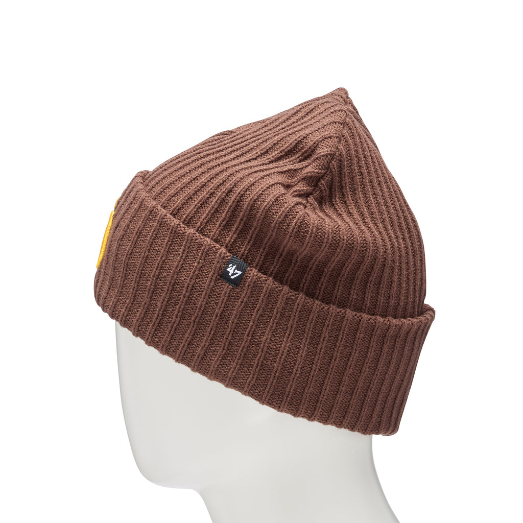伸縮性のあるリブ編みを採用したカフニット。カフ部分に球団ロゴをレイアウトしています。