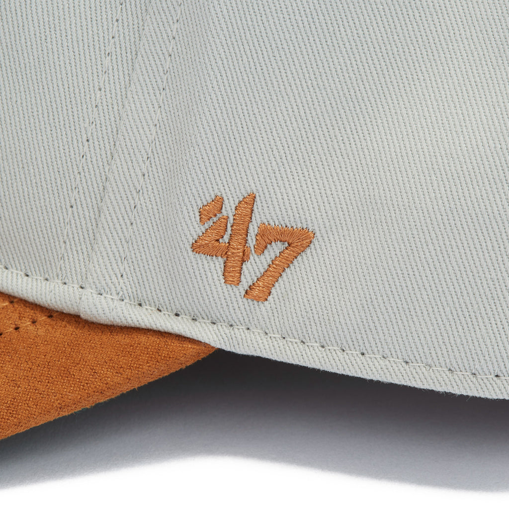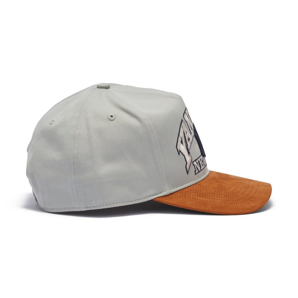 クラウンがノンウォッシュのコットンツイル、バイザーにポリスウェードを合わせた2トーンデザイン。大きめにレイアウトされたロゴがお土産風の印象です。